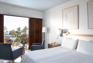 Inland View Room: Diese äußerst hellen, 24 Quadratmeter großen Zimmer sind wahlweise mit einem Doppel-Bett oder zwei Einzelbetten erhältlich. Für eine elegante Atmosphäre sorgen edle Marmorböden. Dazu kommen technische Extras wie kostenloses Wi-Fi. Im Marmorbad wartet eine separate Wanne zum Relaxen. Und vom privaten Balkon aus blickt man direkt auf die zauberhafte Stadtkulisse von Paphos.