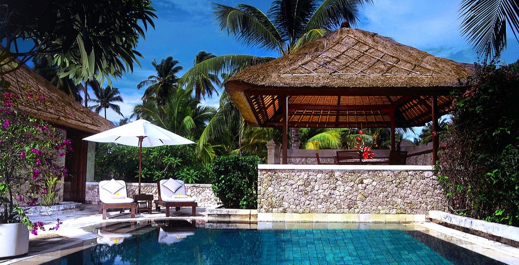 Luxury Pavillon: Diese stilvollen 90-Quadratmeter-Unterkünfte sind wahlweise mit himmlischen King Size- oder Einzel-Betten und herrlichem Garten- oder Meerblick erhältlich. Die exklusive Einrichtung ist typisch balinesisch gehalten: Edle Hölzer und kostbare Stoffe sorgen für eine entspannte Atmosphäre. Im luxuriösen Marmorbad gibt es eine separate Wanne. Und selbstverständlich sind auch alle technischen Annehmlichkeiten im Überfluss vorhanden – angefangen beim Flatscreen-TV über iPhone-Dock und DVD bis hin zu Wifi.