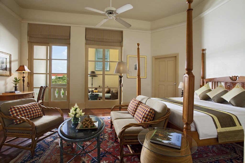 Das Hotel lässt sich in Stil und Charme kaum übertreffen und das gilt für beide Flügel des Resorts: Sowohl für das historische Hauptgebäude als auch für den neu errichteten Nebenflügel. Die insgesamt 170 Zimmer und Suiten sind eine Kombination aus Art-Déco und Khmer Design und komfortabel mit Klimaanlage, Minibar, Safe, Telefon, Wi-Fi und Sat-TV ausgestattet.
