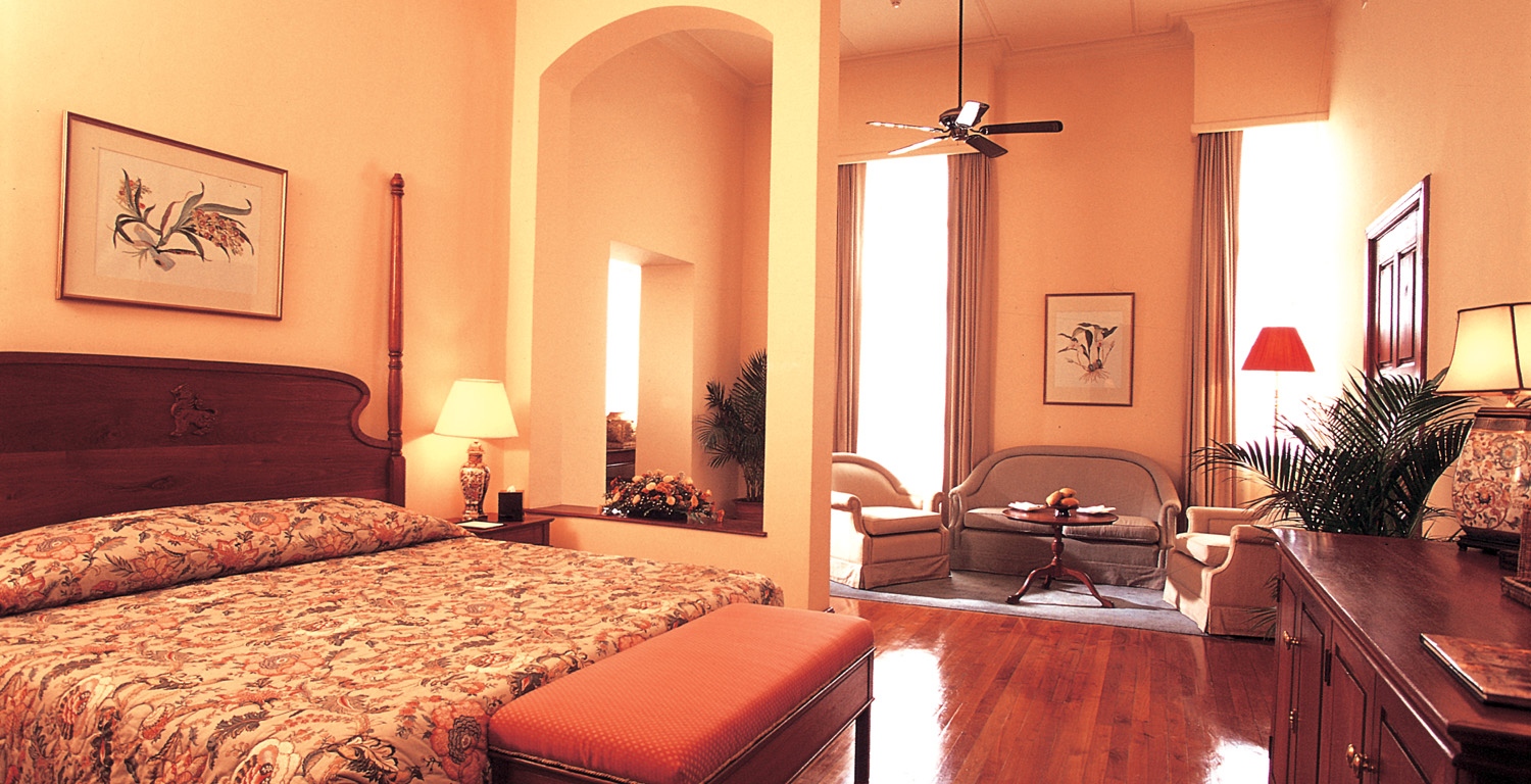 Der viktorianische Stil, die Marmorböden, die Rattan-Möbel und die Leuchter reflektieren auch die Ausstattung der insgesamt 30 Suiten des Hotels. Hohe Decken mit hölzernen Ventilatoren stehen im Kontrast zu modernem, technischem Equipment und die Teakholzböden harmonieren perfekt mit den großzügigen Badezimmern. Jede Unterkunft ist mit Klimaanlage, Ventilator, Safe, Sat-TV und Minibar ausgestattet. Außerdem steht rund um die Uhr ein Butler-Service zur Verfügung.