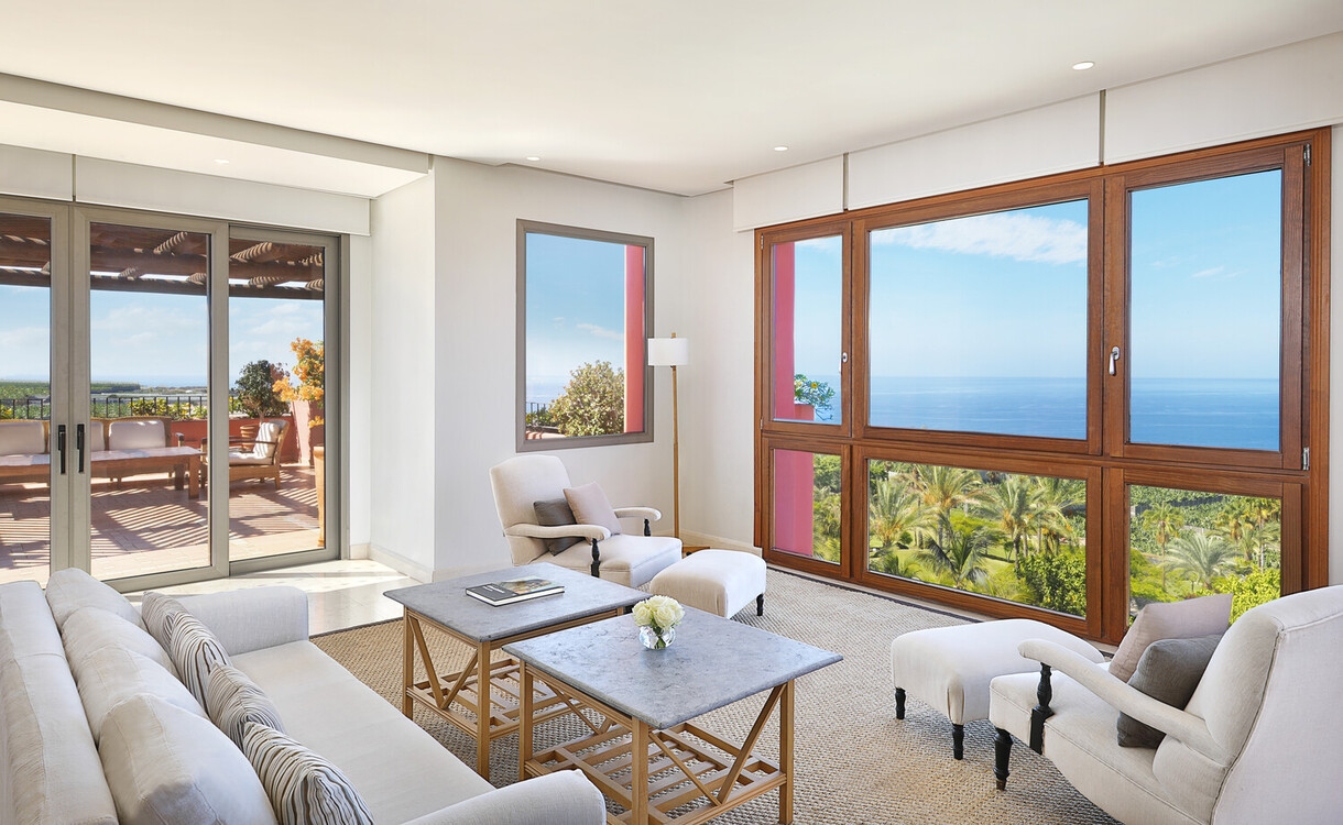 Das Abama Golf & Spa Resort ist ein 160 ha großes Domizil im typischen Finca-Stil und begeistert seine Gäste mit vulkanischen Landschaften und einer üppigen Vegetation: Mehr als 300 Pflanzen-, Baum- und Palmensorten haben auf dem wunderschönen Anwesen ihr Zuhause. Wer hier zum ersten Mal ankommt, sollte ganz tief Luft holen - so atemberaubend ist der Panoramablick über den Atlantik und die Insel La Gomera.
