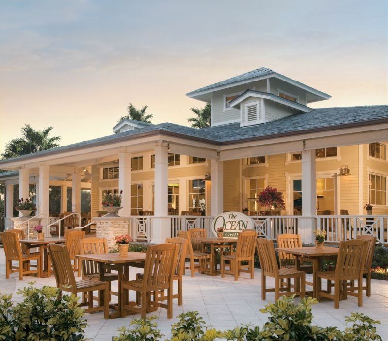 The Ocean Grill: Mitten auf dem herrlichen Golfkurs kann man draußen oder drinnen in einem typischen Seaside-Cottage entspannt eine kleine oder größere Stärkung zu sich nehmen.