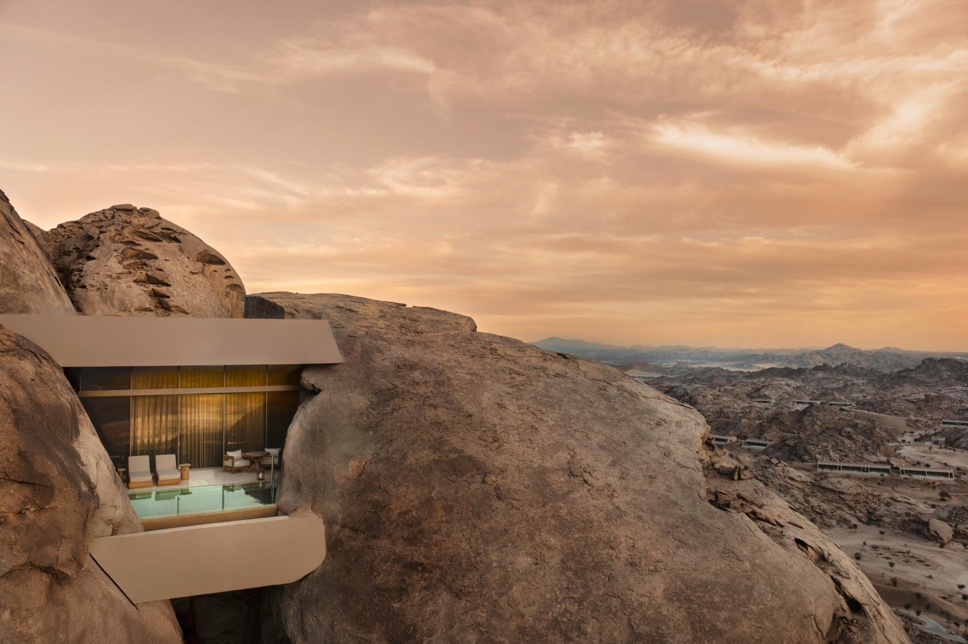 Mountain Cave SuitenWer eines dieser 130 Quadratmeter großen, in die Felswand integrierten Urlaubsquartiere der Extraklasse bezieht, darf sich auf viele Extras freuen. Dazu zählen eine besonders originelle Architektur und Einrichtung – sowie ein privater Cliffside‑Plunge Pool mit atemberaubendem Panoramablick auf die Wüste.