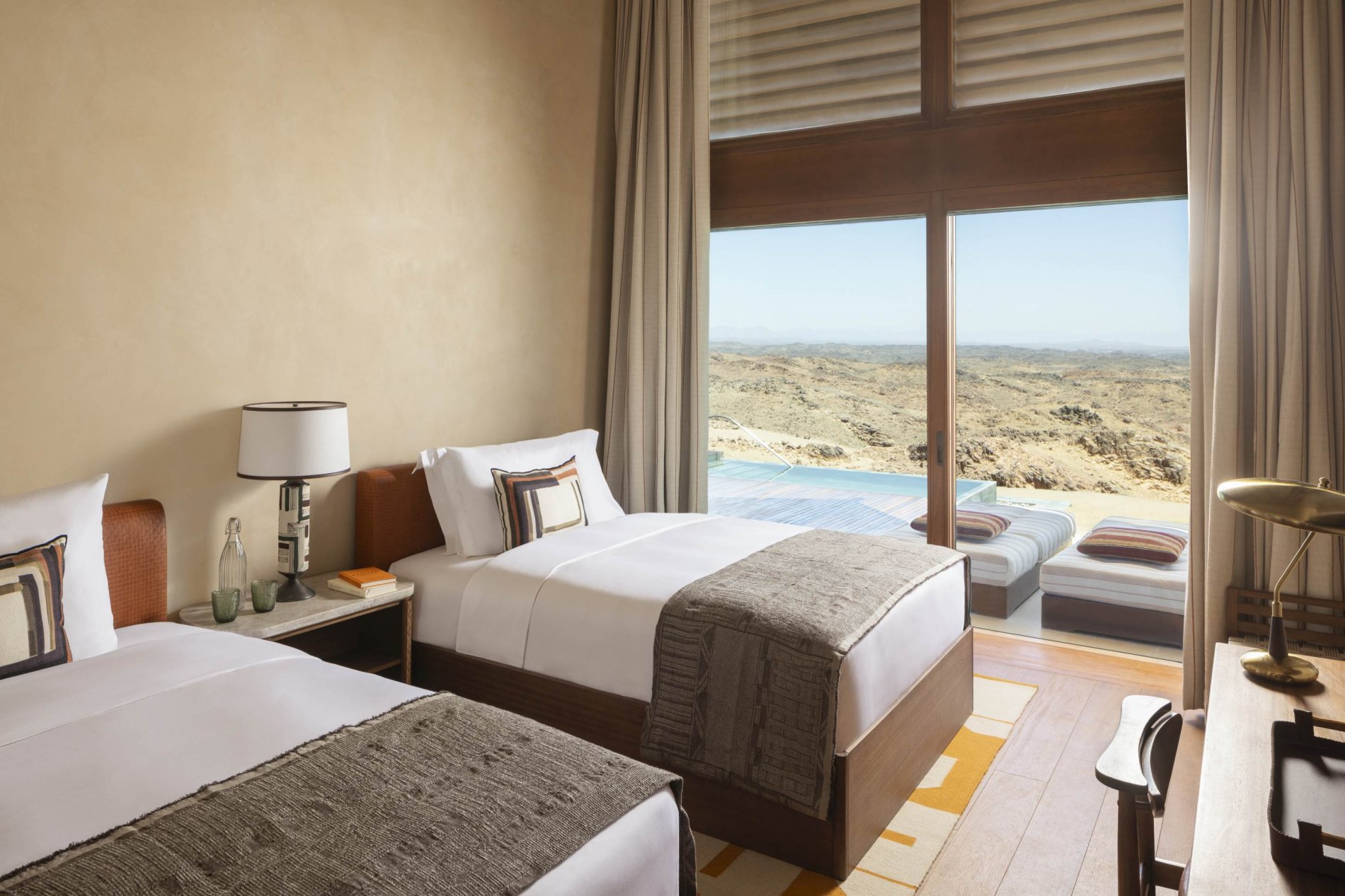 Diese rund 60 Quadratmeter großen Wohlfühlrefugien für bis zu zwei Personen lassen keine Wünsche offen: Zur hochkarätigen Ausstattung zählen ein elegantes Schlafzimmer, ein edles Bad mit Wanne und eine private Terrasse mit gemütlichem Sitzbereich und herrlichem Wüstenpanorama.