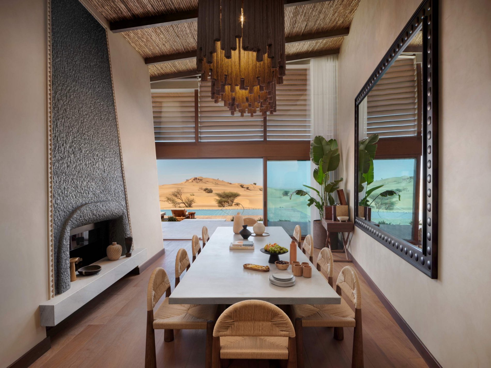 Die Traumunterkunft umfasst vier elegante Schlafzimmer, großzügige Wohn- und Dining-Bereiche, eine erstklassig ausgestattete Kitchenette und eine weitläufige Pool- und Outdoor-Area mit spektakulärem Blick auf die unvergesslichen Sonnenuntergänge über der Wüste.