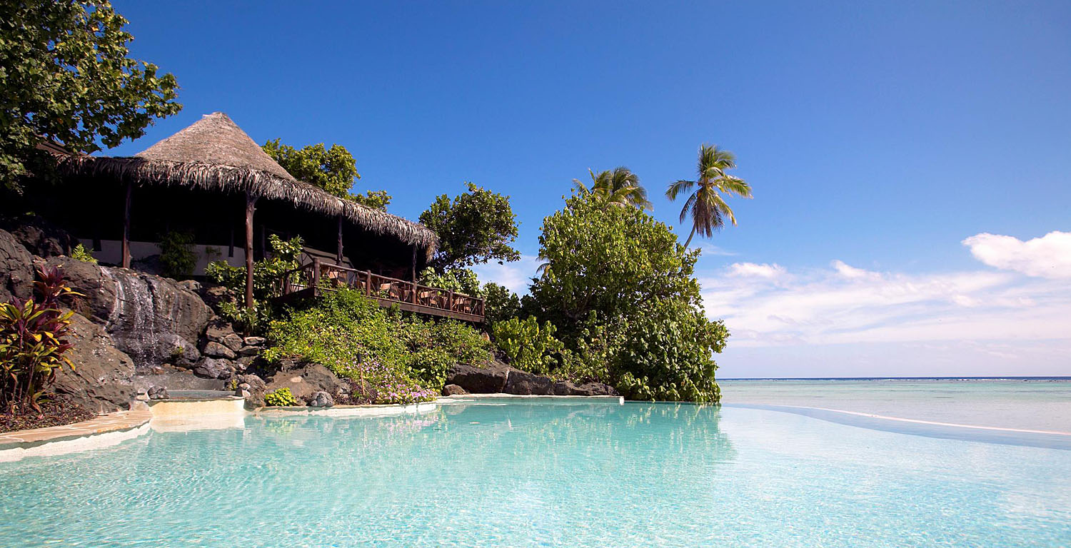 Das beste Hotel der Insel Aitutaki, nicht zufällig Mitglied der exklusiven Gruppe der Small Luxury Hotels of the World, befindet sich in traumhafter Lage direkt an einem etwa 500 Meter langen Sandstrand.